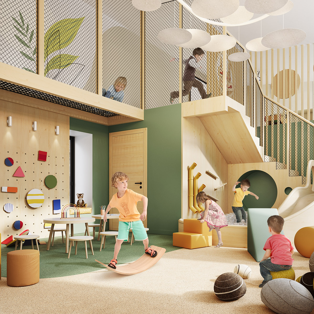 - Абстрактный образ и трансформируемость: пространство всегда остаётся интересным, не ограничивая ребёнка заданными сценариями игры и позволяя ему задействовать фантазию.