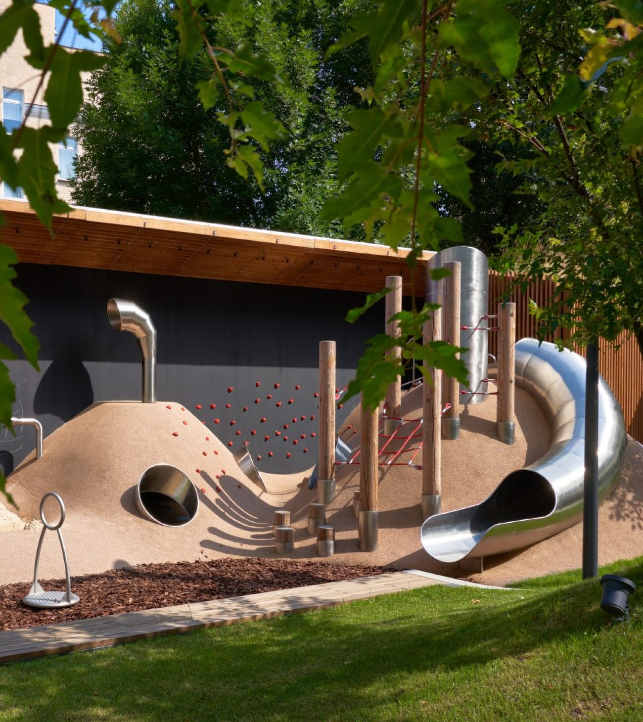 - Приглашение к общению: мы используем звуковые трубы, перископы, иллюминаторы, системы для игр с песком и прочие элементы, побуждая детей сотрудничать и дружить.