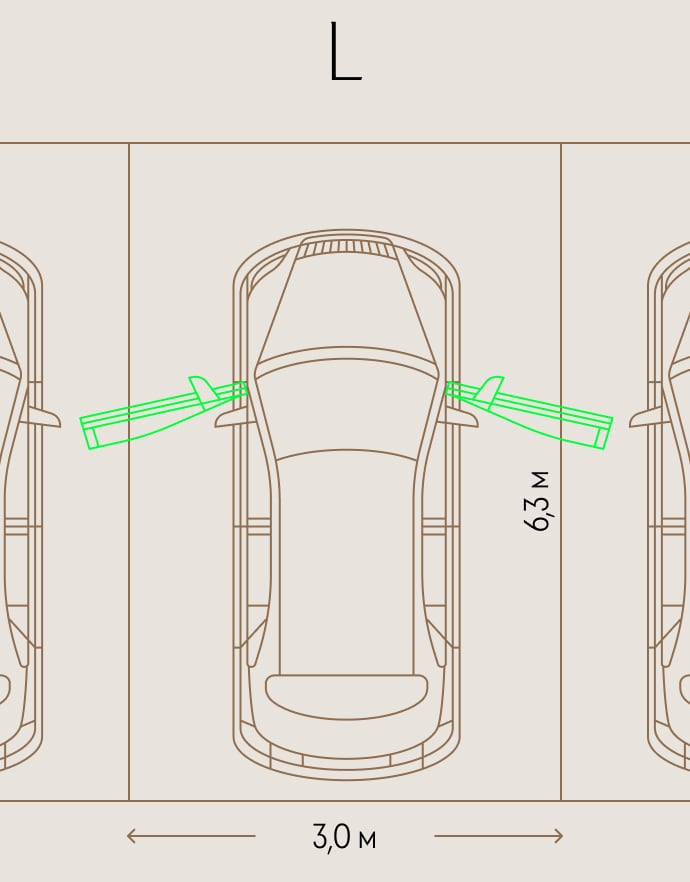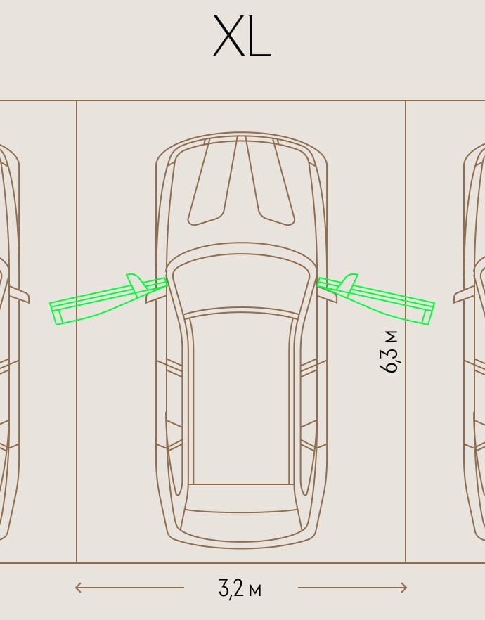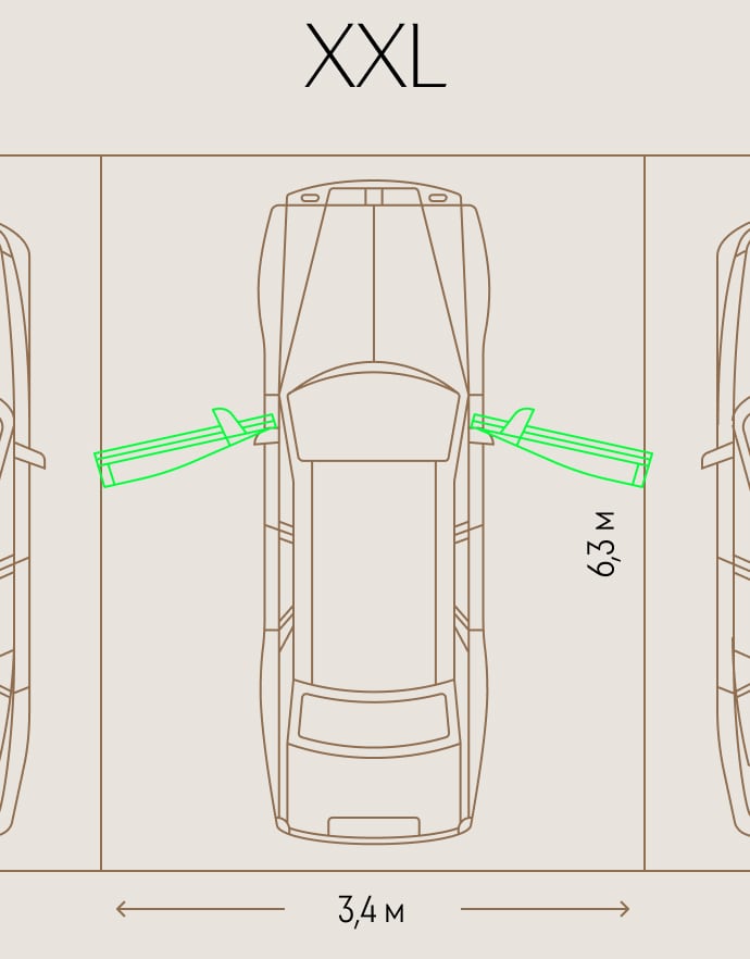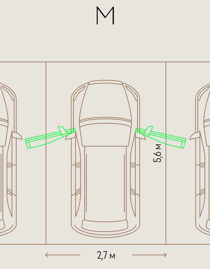 - высота потолка и расстояние от колёсоотбойников до стены рассчитаны так, чтобы вам было комфортно использовать багажник;