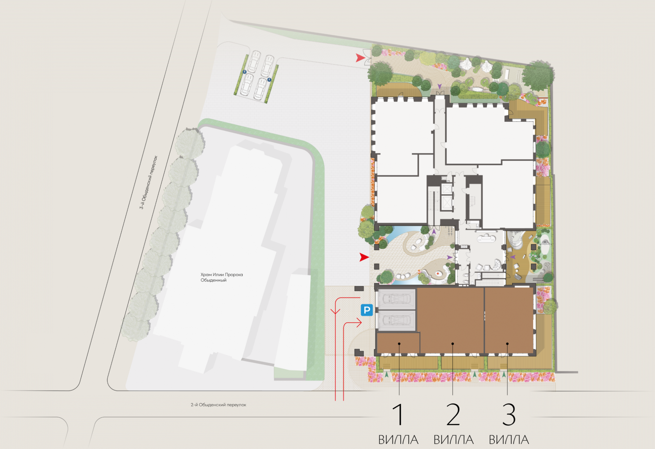 - В виллах №2 и №3 предусмотрены 2 входа: с улицы и с —1 этажа