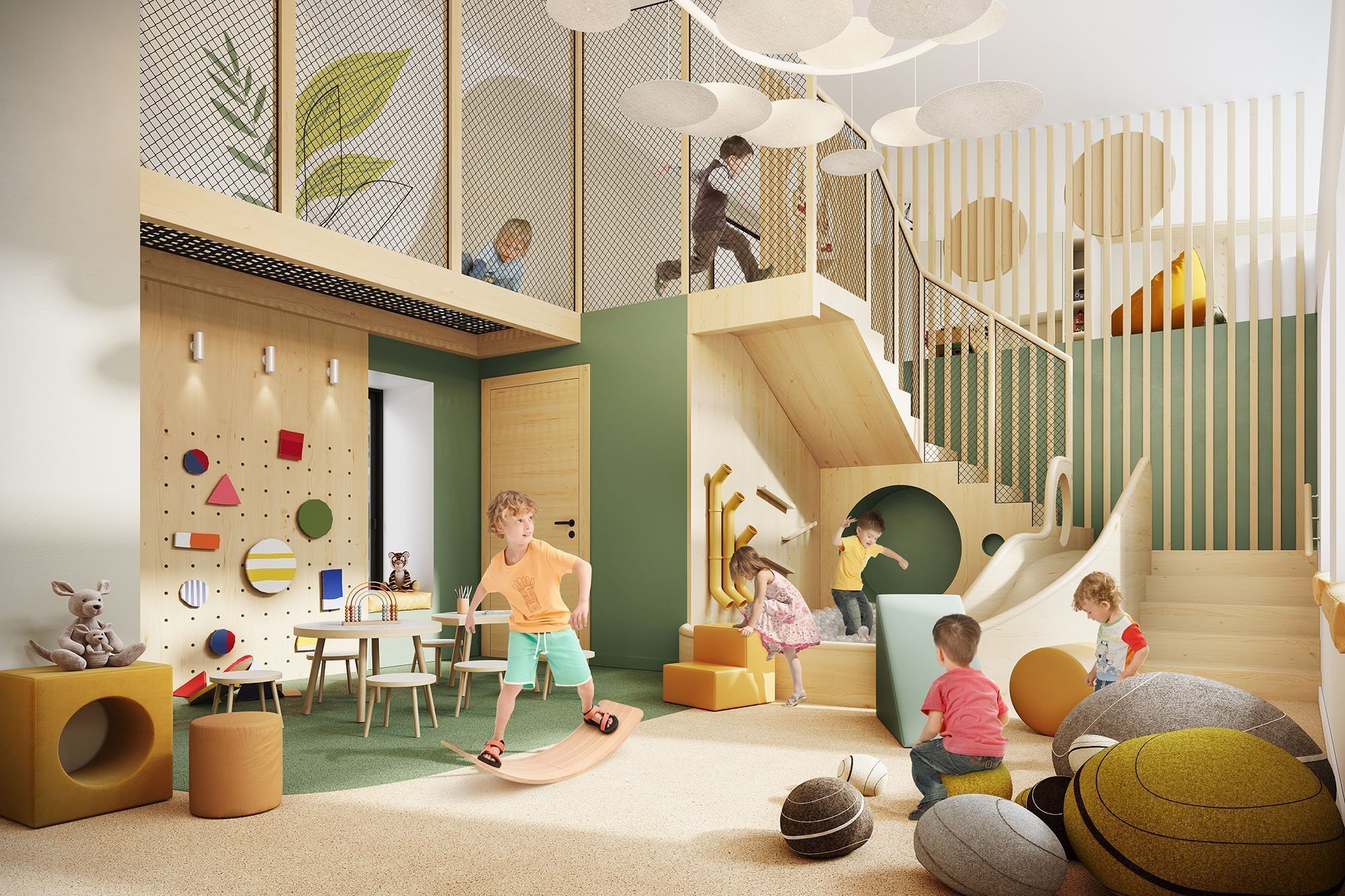 - Абстрактный образ и трансформируемость: пространство всегда остаётся интересным, не ограничивая ребёнка заданными сценариями игры и позволяя ему задействовать фантазию.